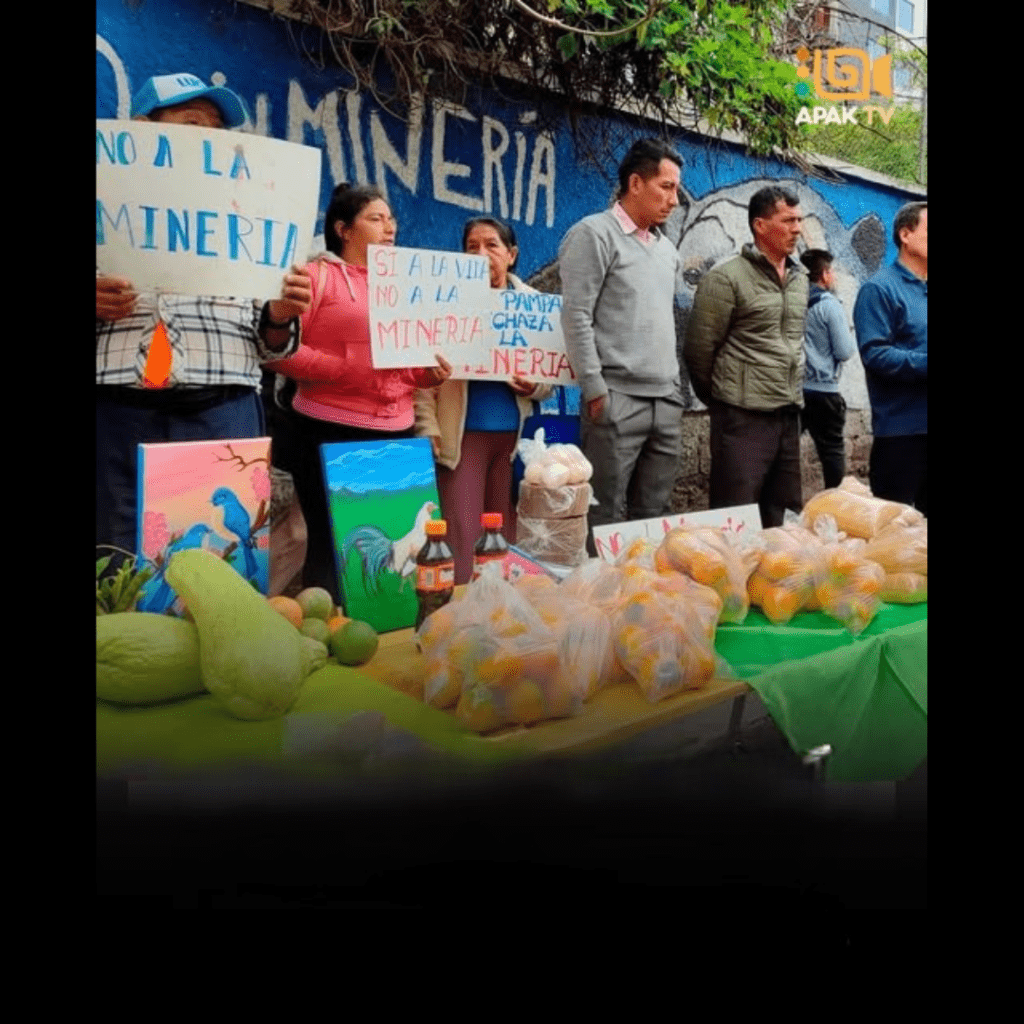La jornada incluyó un plantón artístico acompañado de una feria agroproductiva, como parte de las acciones de protesta impulsadas por las comunidades, que mantienen una resistencia activa frente a la actividad minera en su territorio.